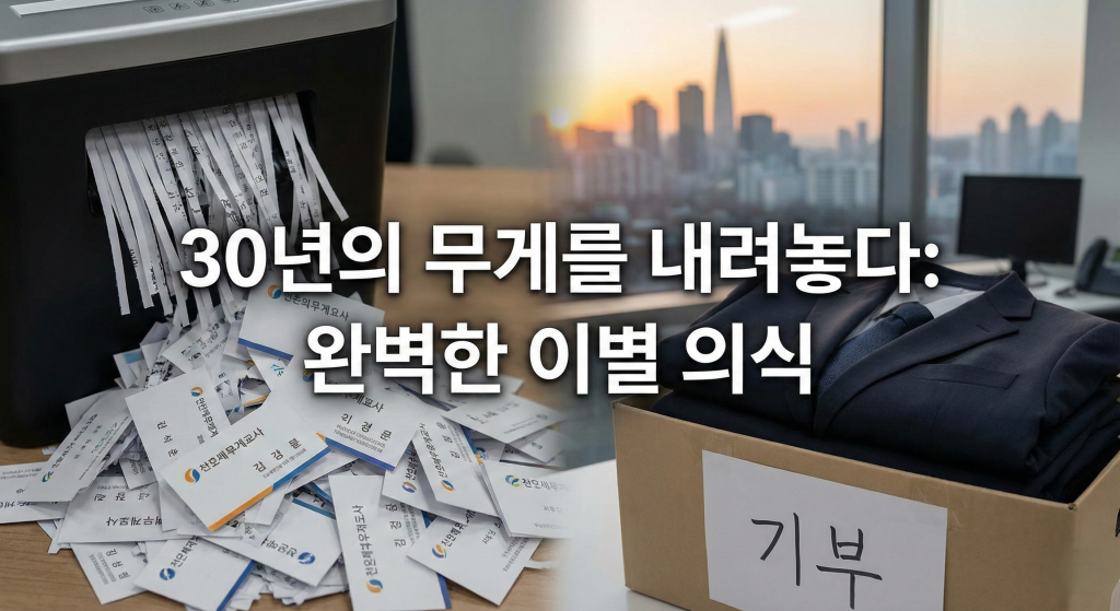 수십 년간 나를 대변했던 수천 장의 명함들. 그중 가장 의미 있는 몇 장만 남기고 나머지는 파쇄기에 넣어버리세요.