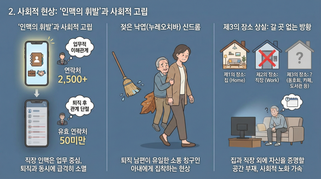 2. 정년 퇴직 후 사회적 현상: ‘인맥의 휘발’과 사회적 고립