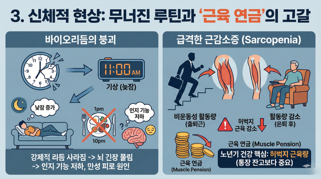 3. 정년 퇴직 후 신체적 현상: 무너진 루틴과 ‘근육 연금’의 고갈